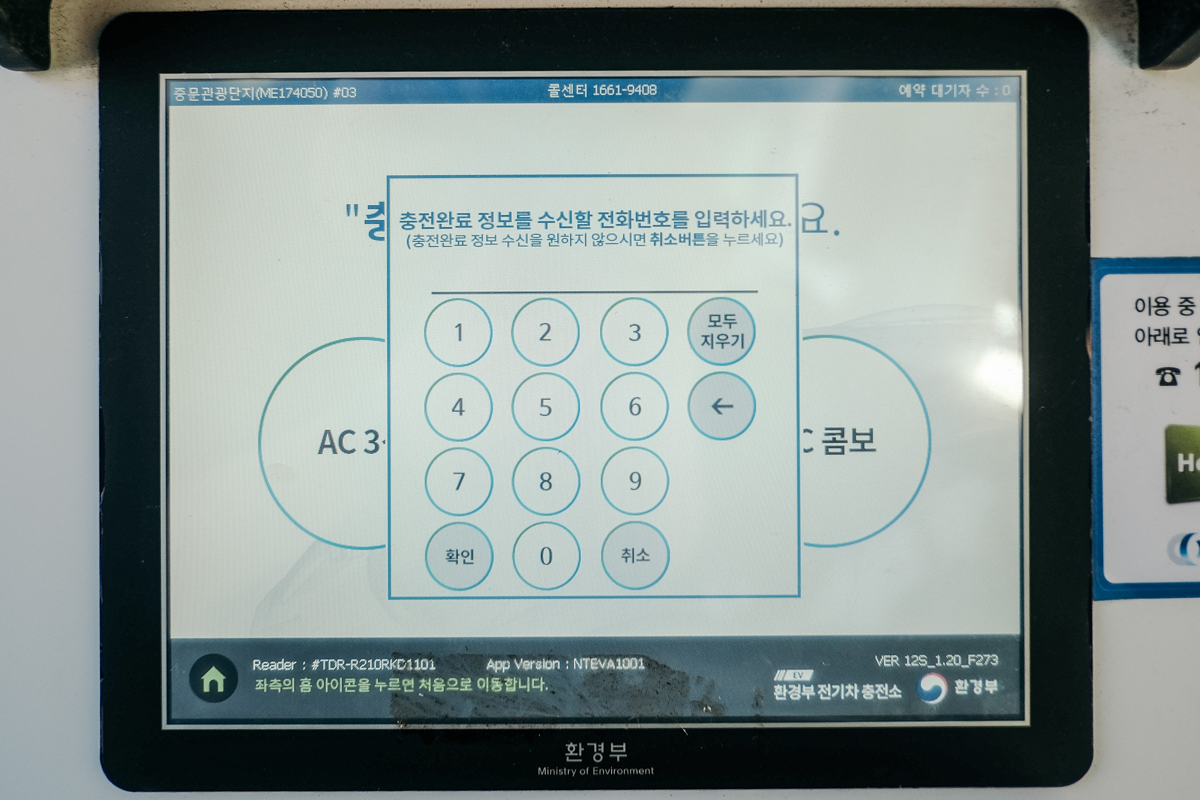 렌트카 업체에서는 신용카드로 충전이 안되는 충전기들이 존재한다고 귀뜸해 주었습니다. 정말로 몇몇 충전소는 회원카드로만 충전이 가능했습니다. 하지만 환경부로고가 있는 충전기들은 신용카드로 결재가 가능했습니다. 환경부 전기차 웹사이트에서 위치와 충전기 타입, 사용가능 상태까지 확인이 가능했습니다. 이동하고자하는 목적지 근처에 충전소를 확인해 두면 좋을것 같습니다.